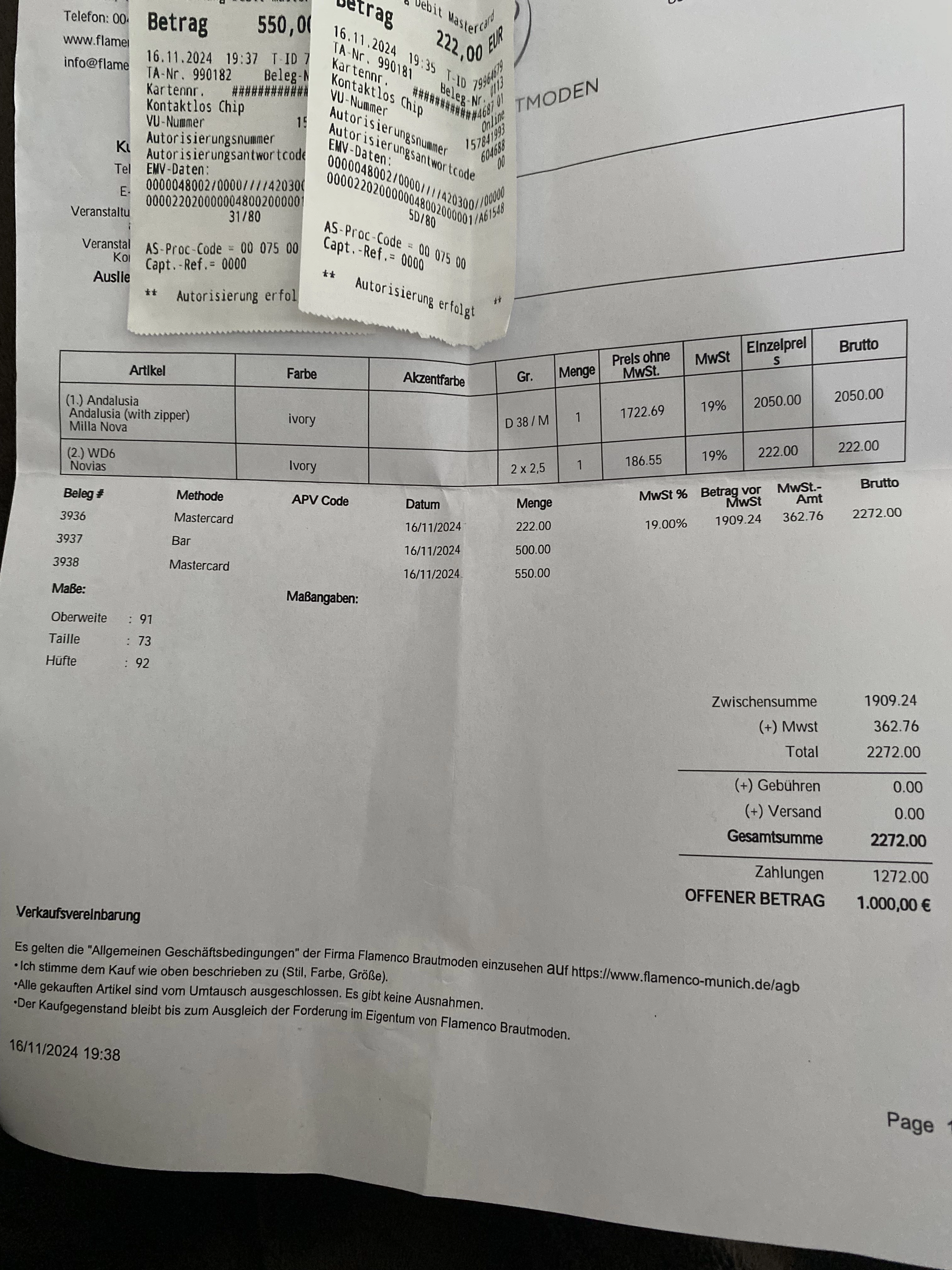 Originalrechnung etc. wird alles natürlich auch übergeben!