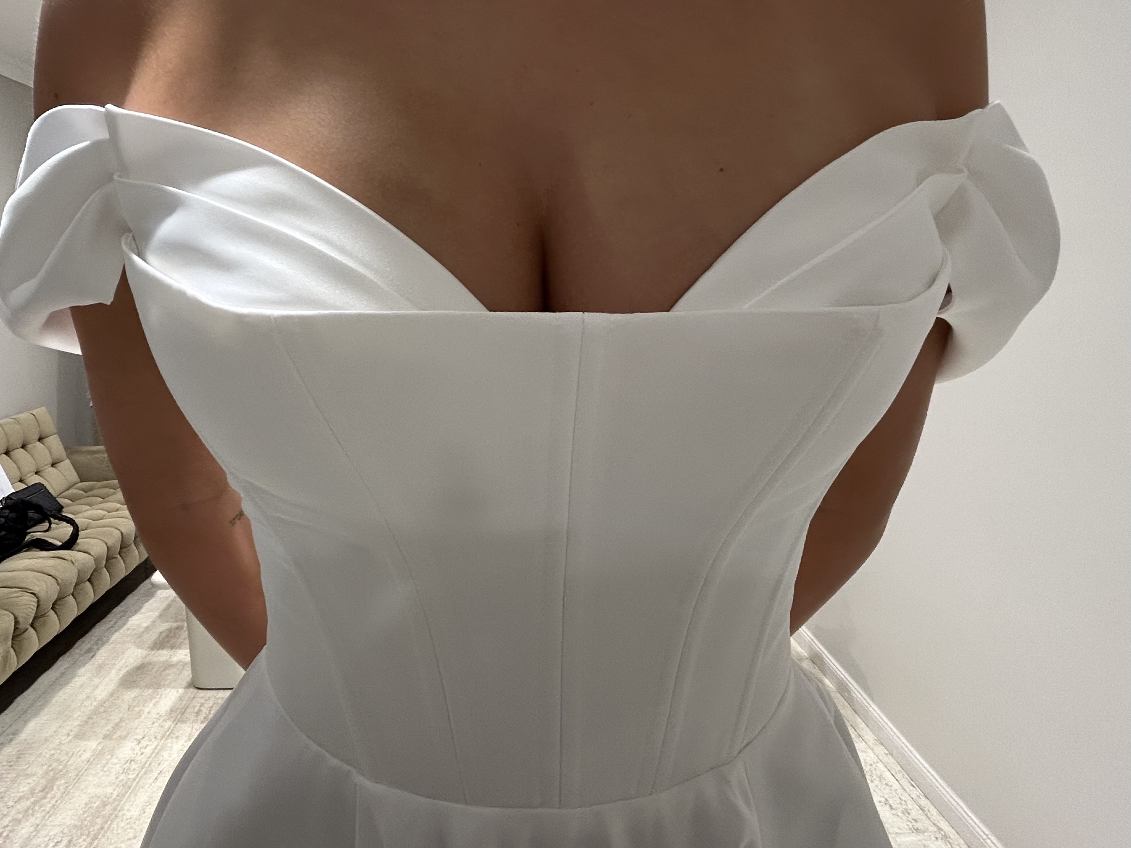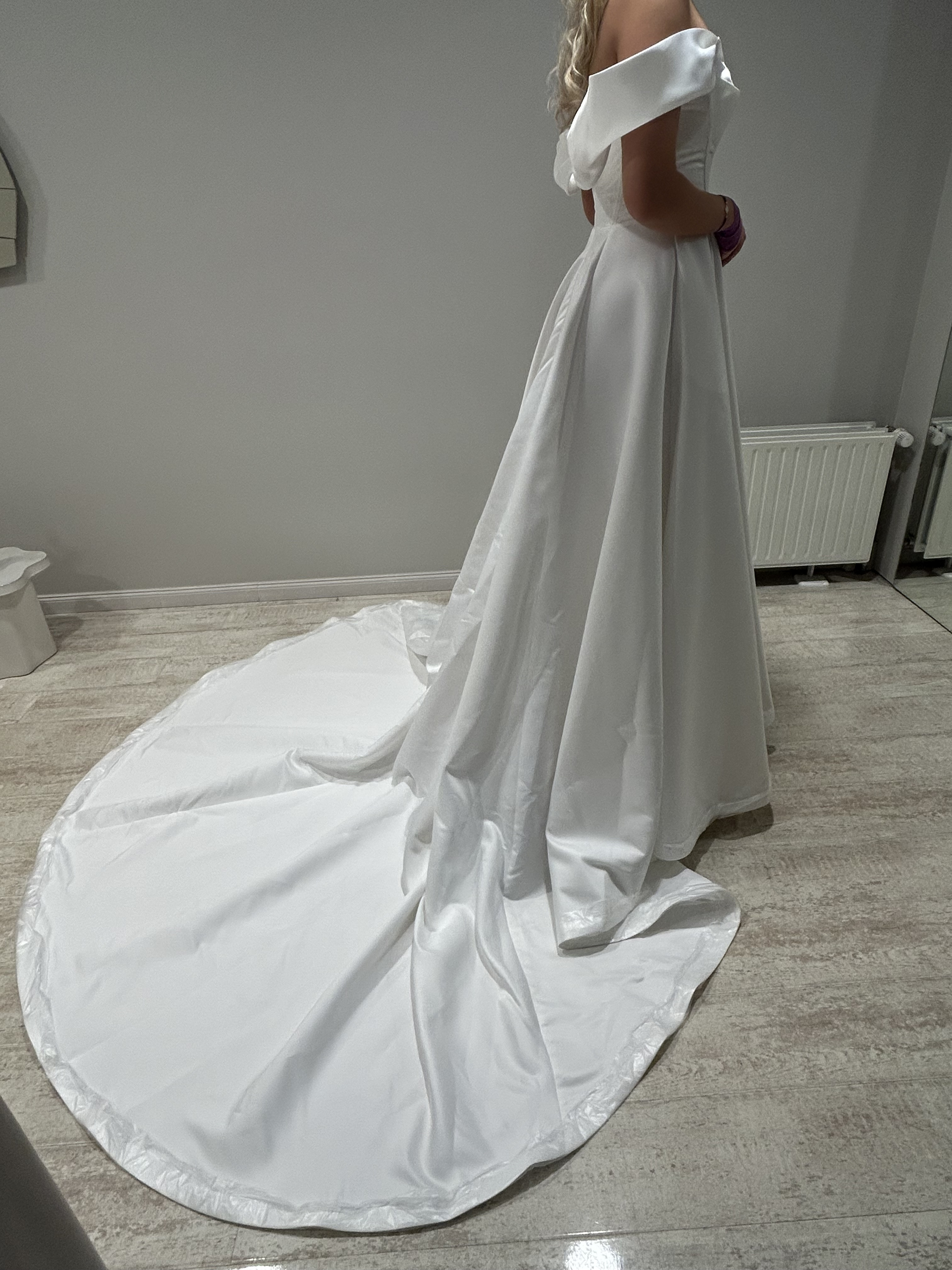 "Ich verkaufe hier mein wunderschönes Brautkleid „Besset“ von Milla Nova, das ich nur einmal bei der Abholung kurz für Fotos getragen habe – also praktisch neu und in perfektem Zustand.
