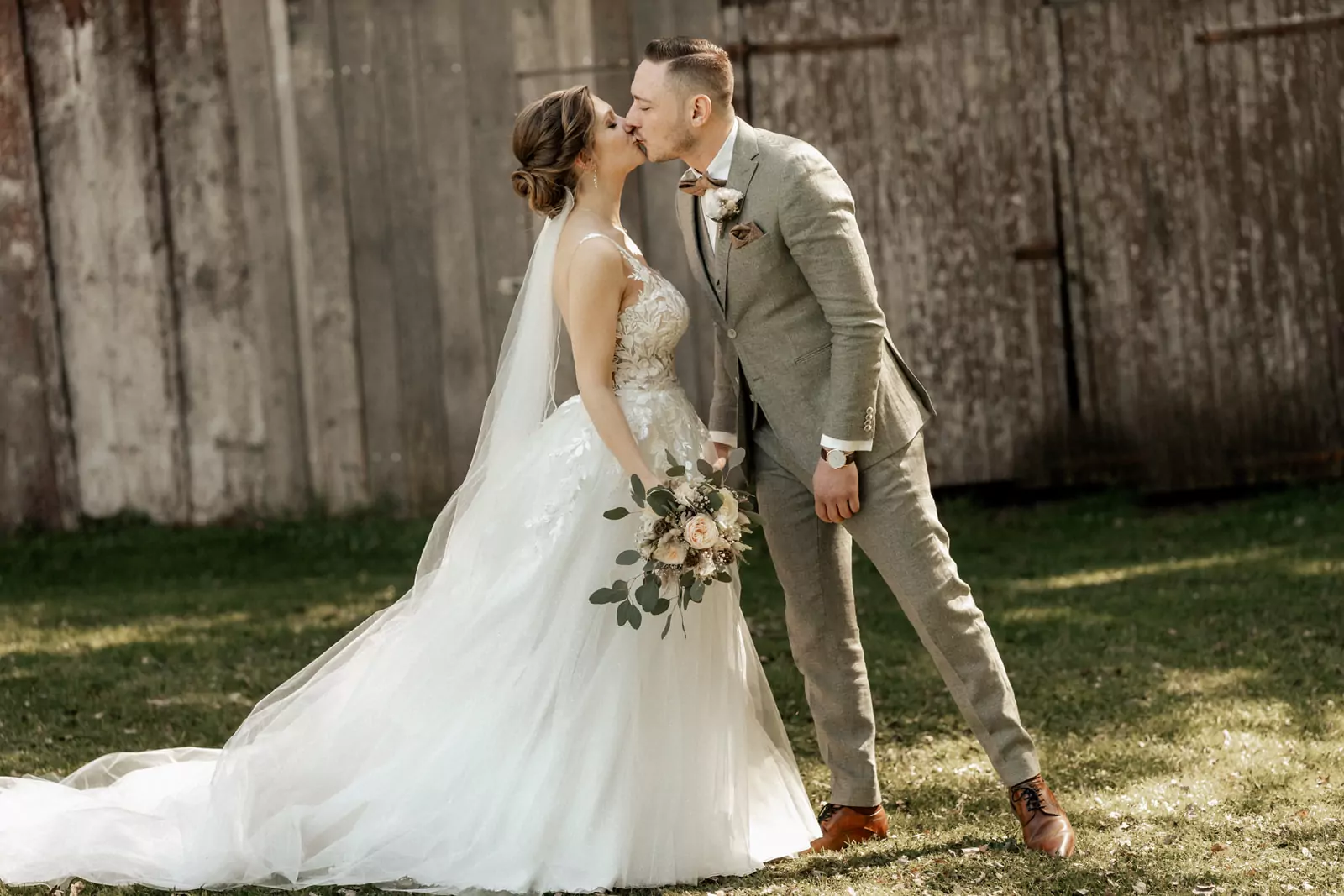 * Schleier: Der dazu passende Schleier mit Zuckerperlenkante ist ebenfalls erhältlich und rundet das Gesamtbild perfekt ab.