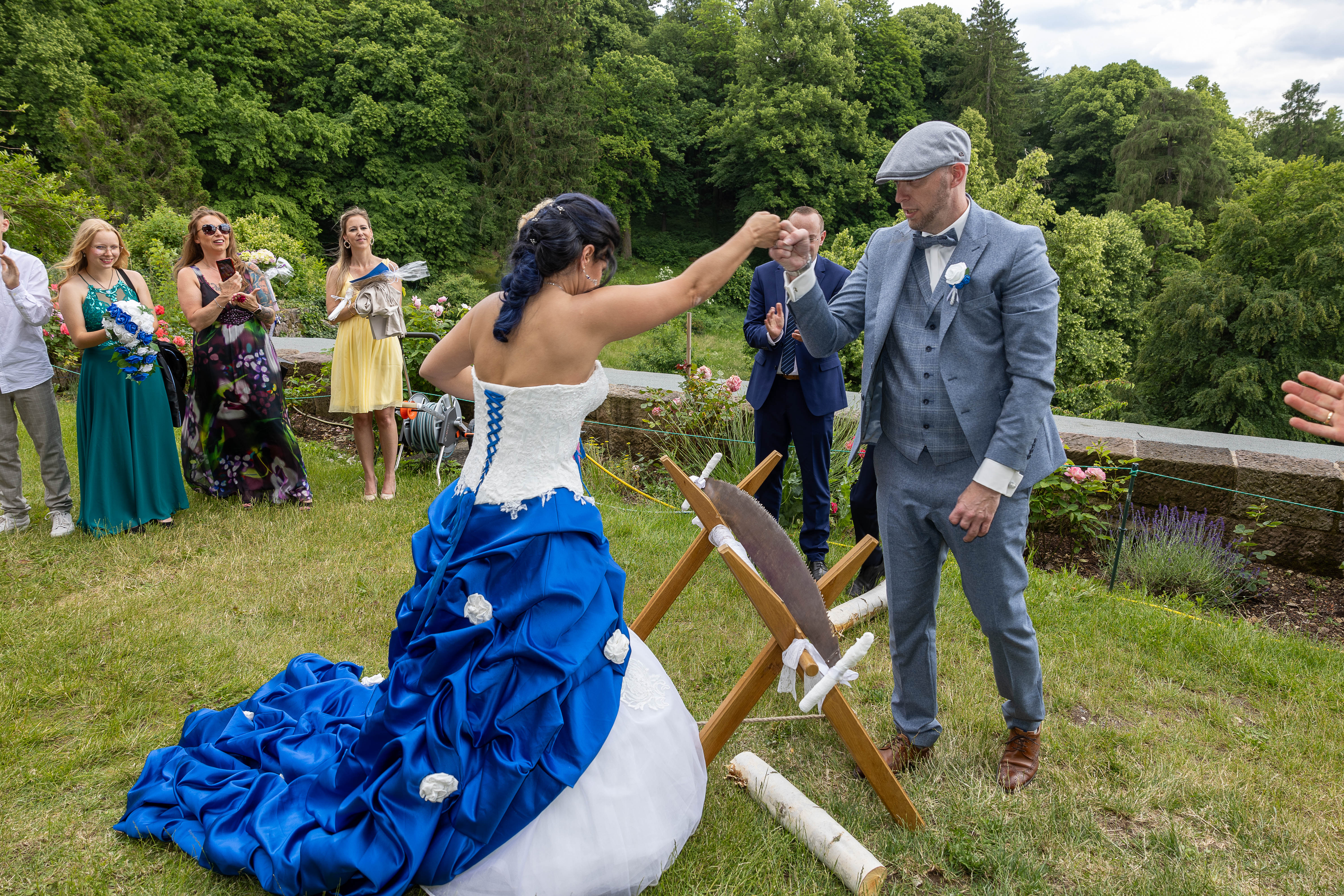 "Königsblaue lange Schleppe