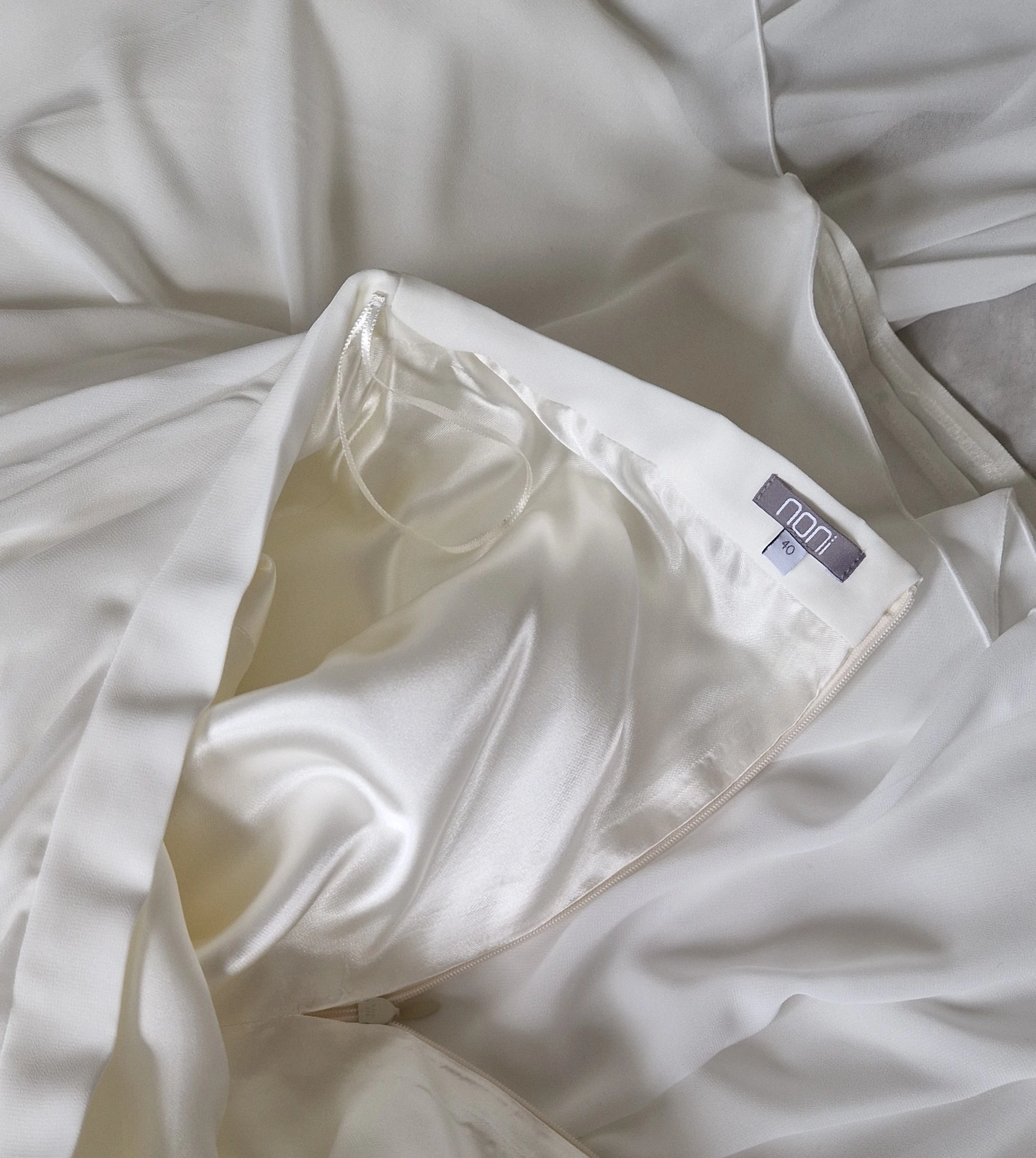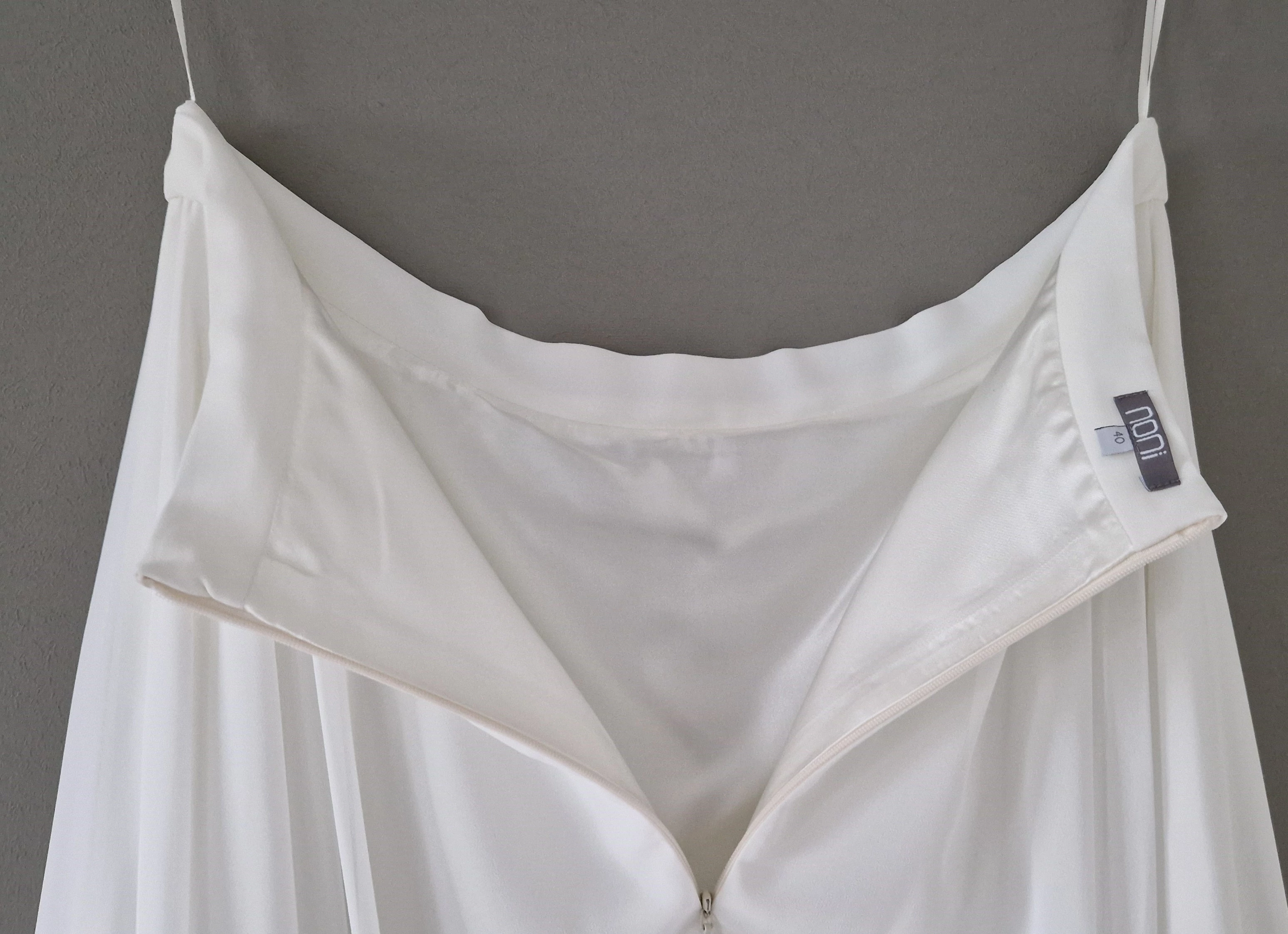 "Ich verkaufe mein wunderschönes, ungetragenes Brautoutfit von noni. Es besteht aus dem zarten Body "Lou" mit eleganter, geometrischer Spitze und dem fließenden Chiffonrock "Isla" in Ivory.