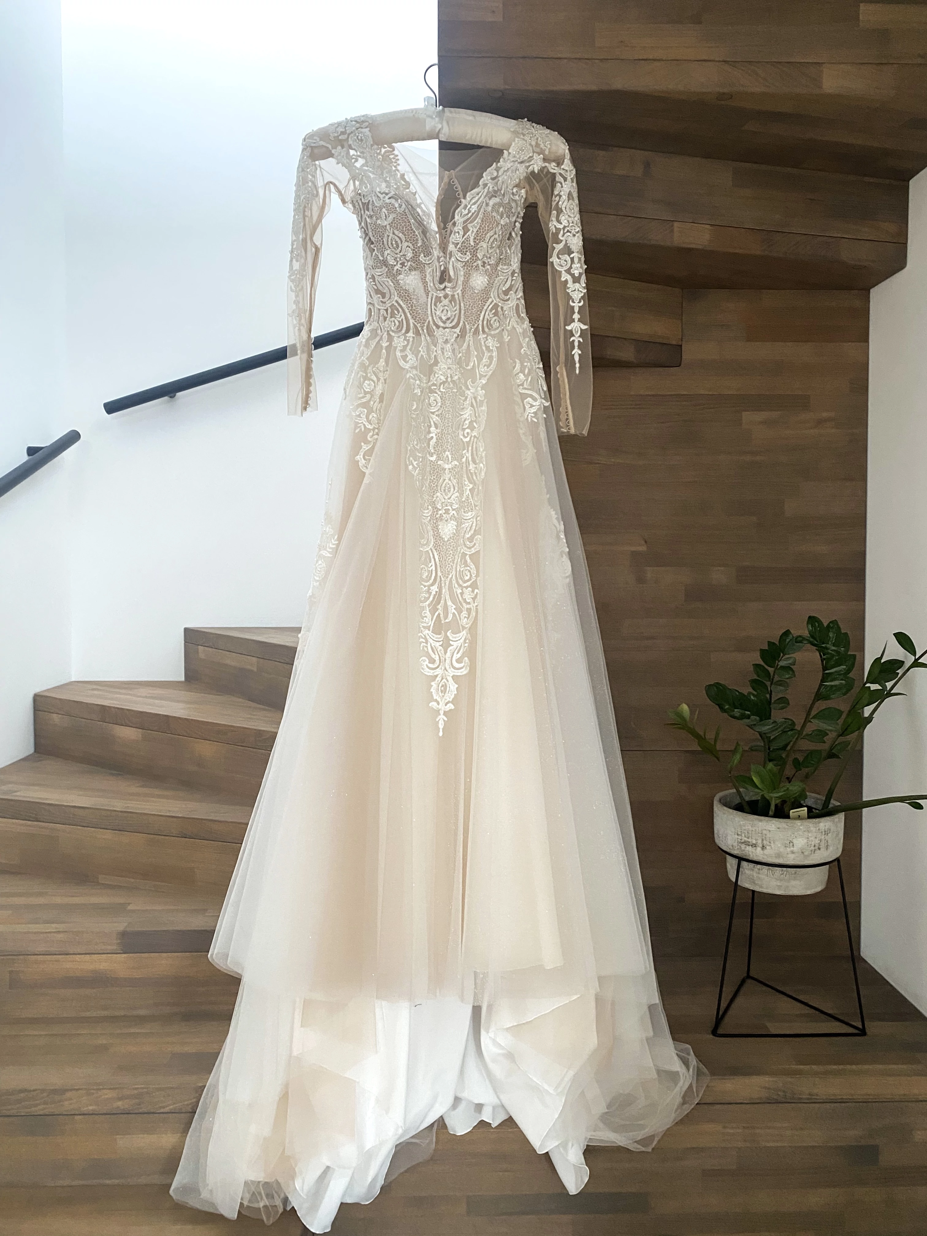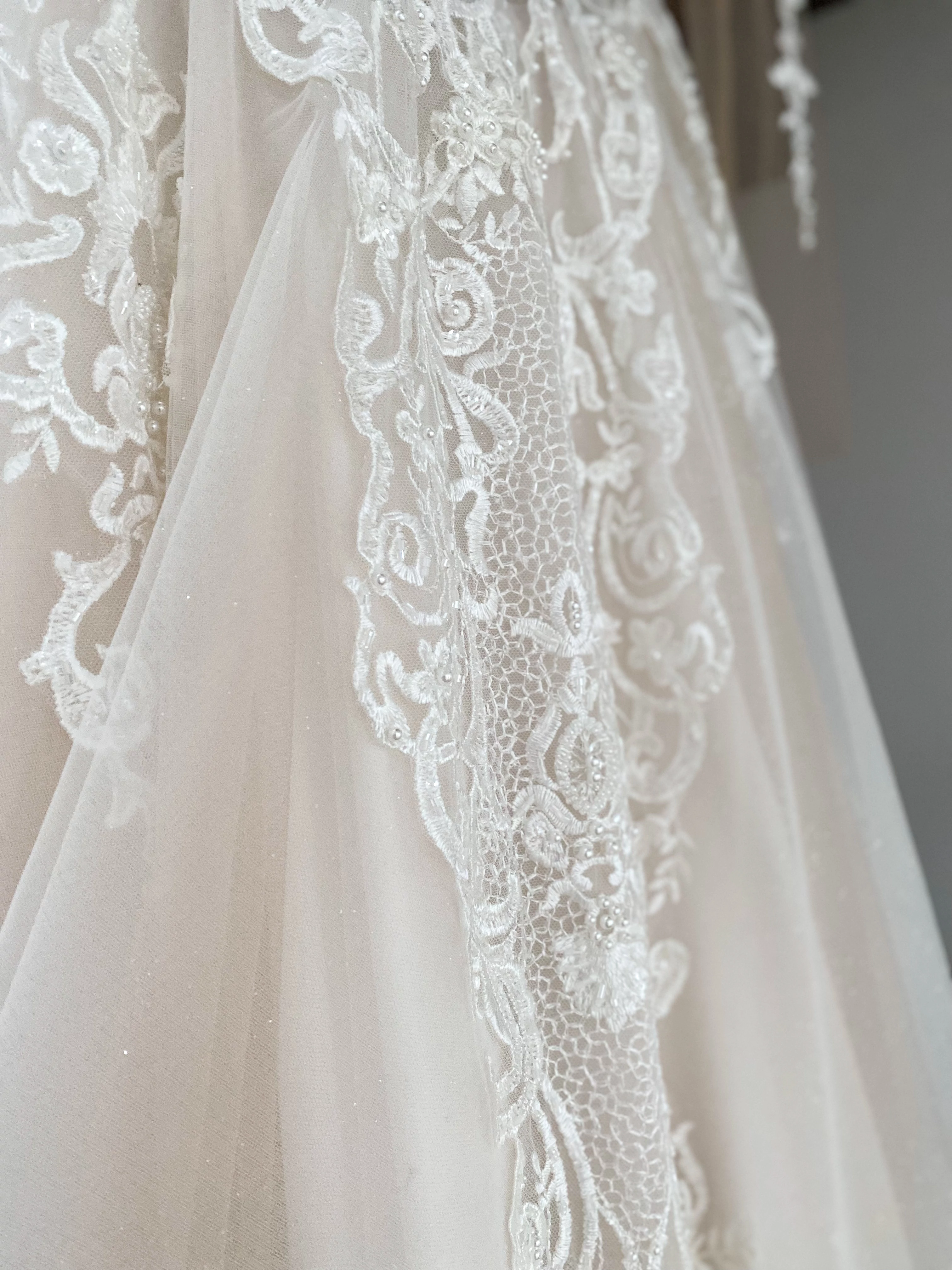 Dieses Kleid ist ideal für Bräute, die sich Romantik, Leichtigkeit und luxuriöse Details wünschen. Es ist ein Kleid, das nicht nur getragen wird, sondern einen Moment erschafft — ein Kleid, das Herzen höher schlagen lässt.