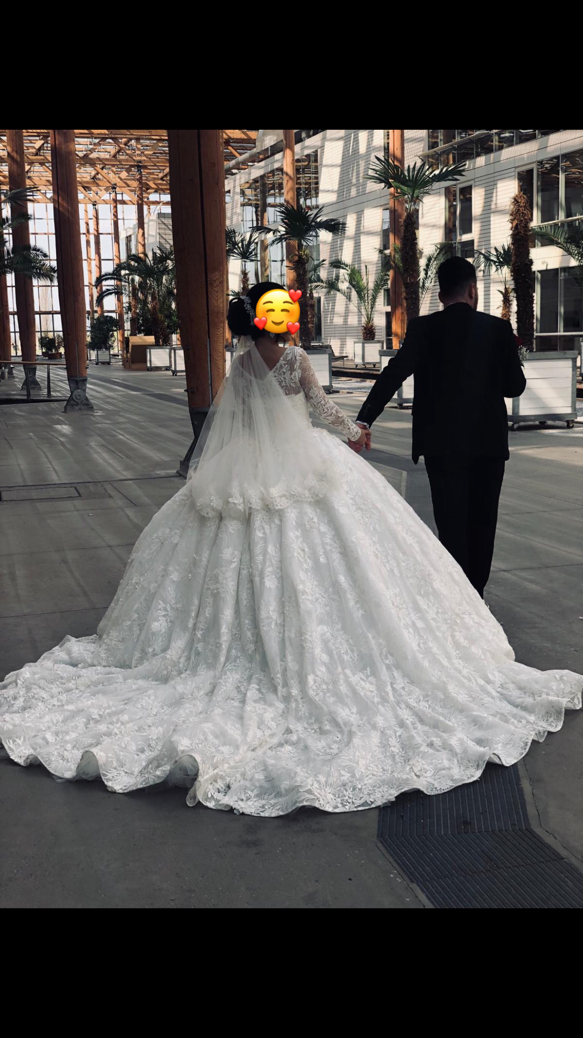 "Das Kleid wurde extra angefertigt in der Türkei und wurde nach Deutschland versendet. französische Spitze (wenn ich mich richtig erinnere😅) mit Blumen motiv und Strassstein ähnlichen Steinchen dekoriert) kleid ist einwenig schwer vom Gewicht daher empfehle ich keine Absatzschuhe mit schmalen Absatz."