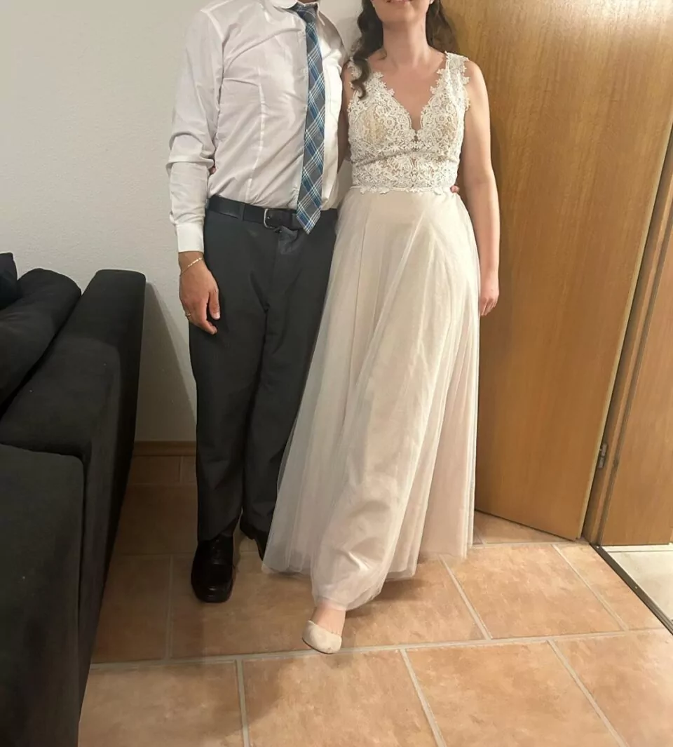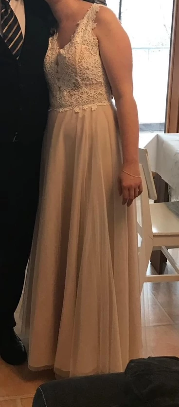 "Das Kleid ist mit Spitze bestückt und sitzt super angenehm.