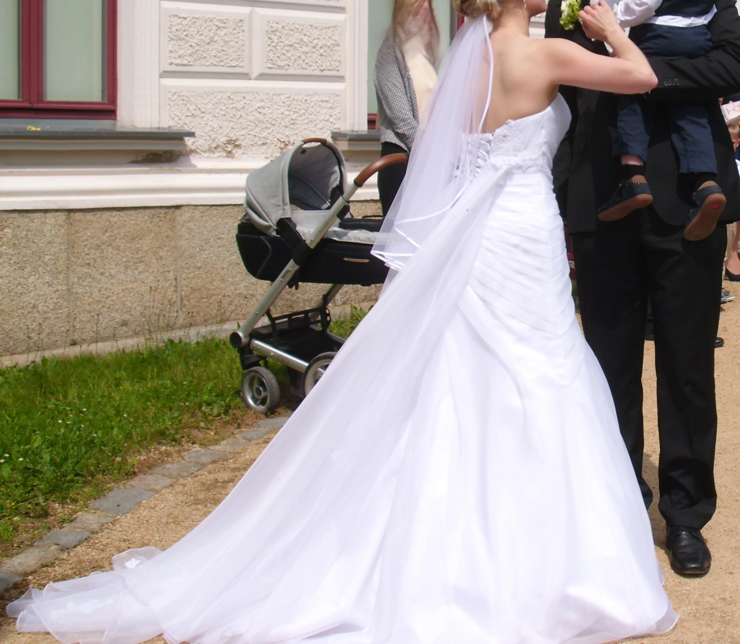 Das Kleid ist Gr. S/ 36/38, die Braut 1,62 cm, Schuhe ca. 5cm hoch.