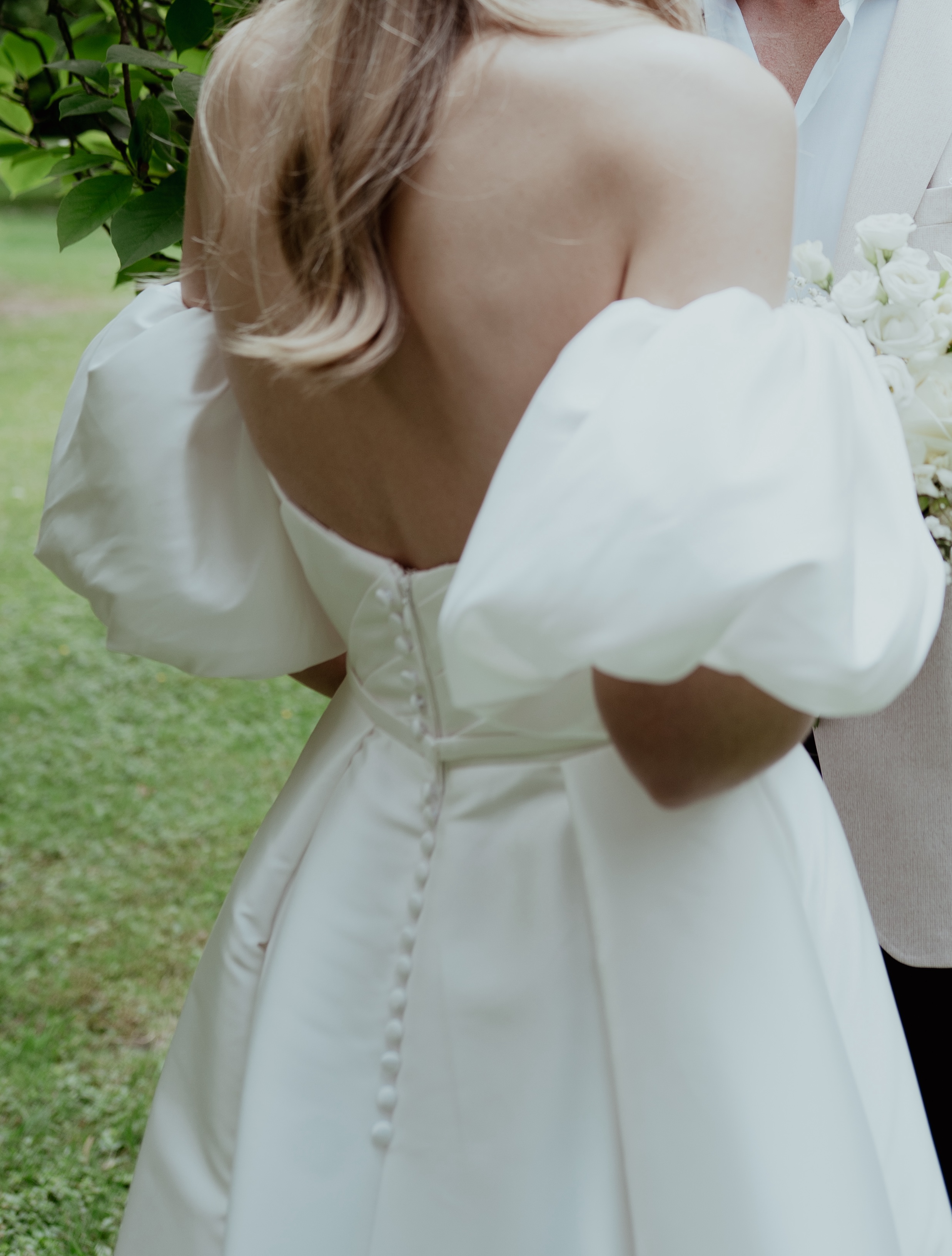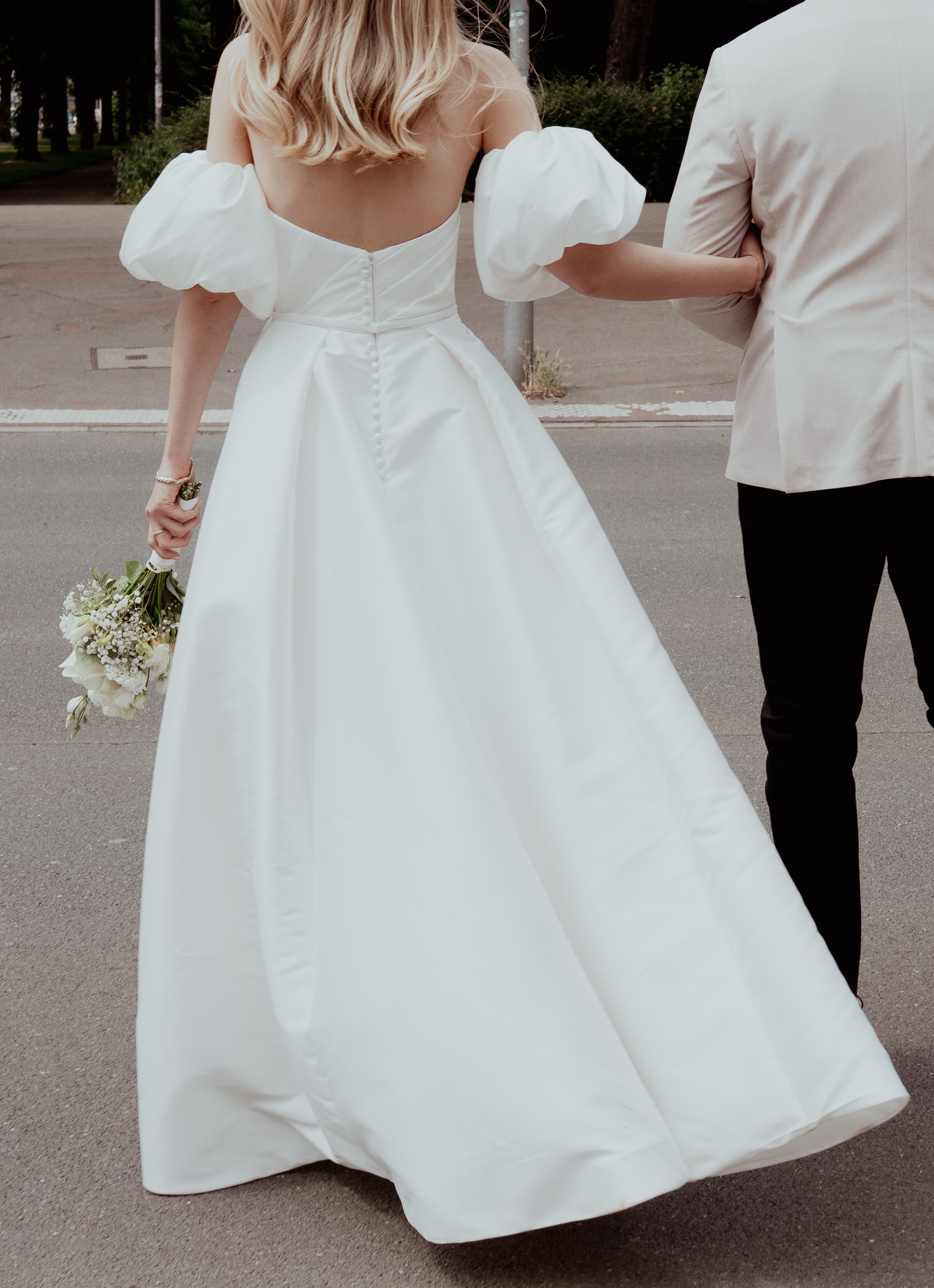 Trägerlos + abnehmbare Puffärmel