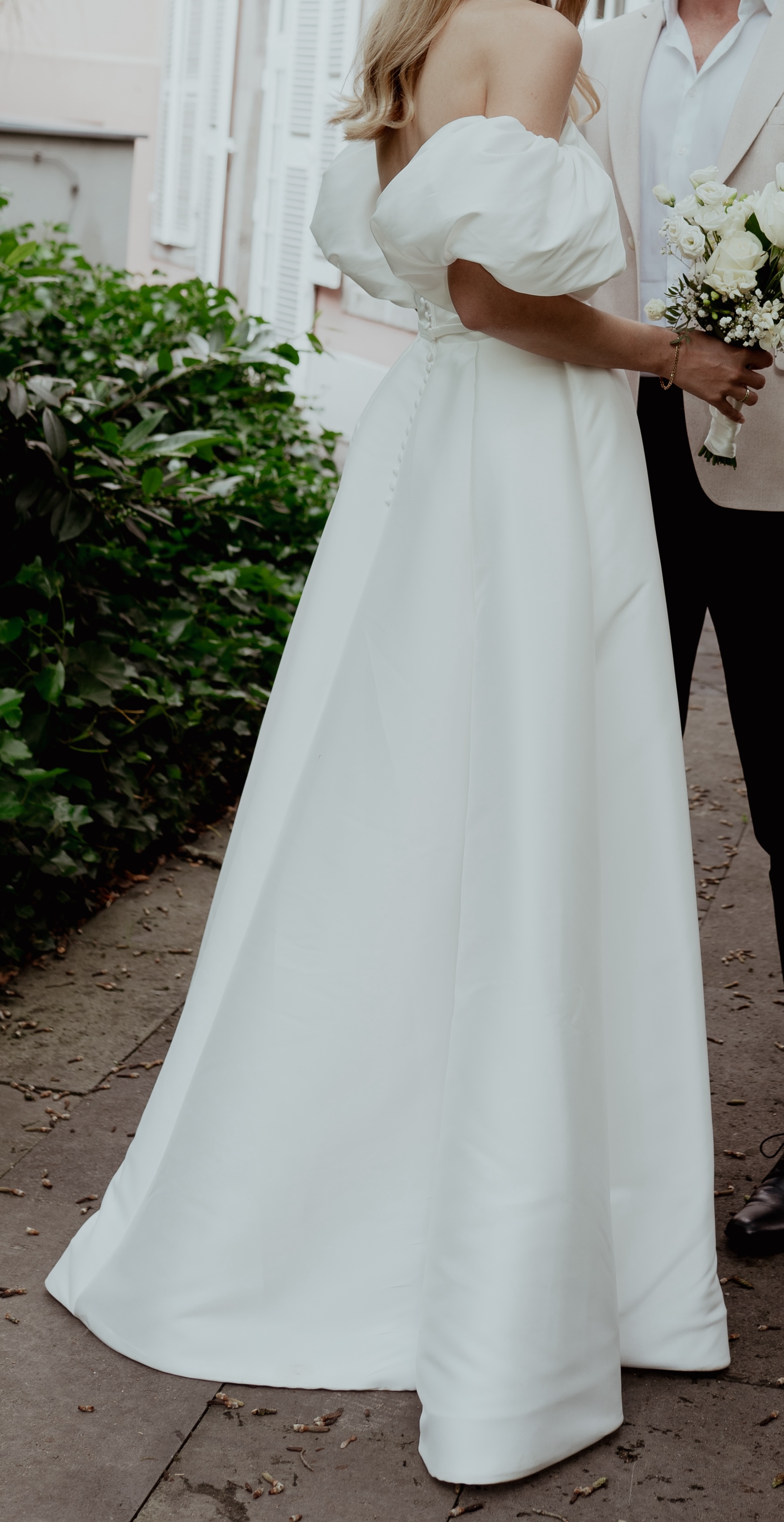 Ich verkaufe mein traumhaftes A-Linien Brautkleid aus hochwertigem Mikado in Ivory. Das Kleid hat ein ärmeloses Oberteil mit seitlicher Raffung. Mit den abnehmbaren Puffärmeln kann man den Look varieren und sich uneingeschränkt bewegen.