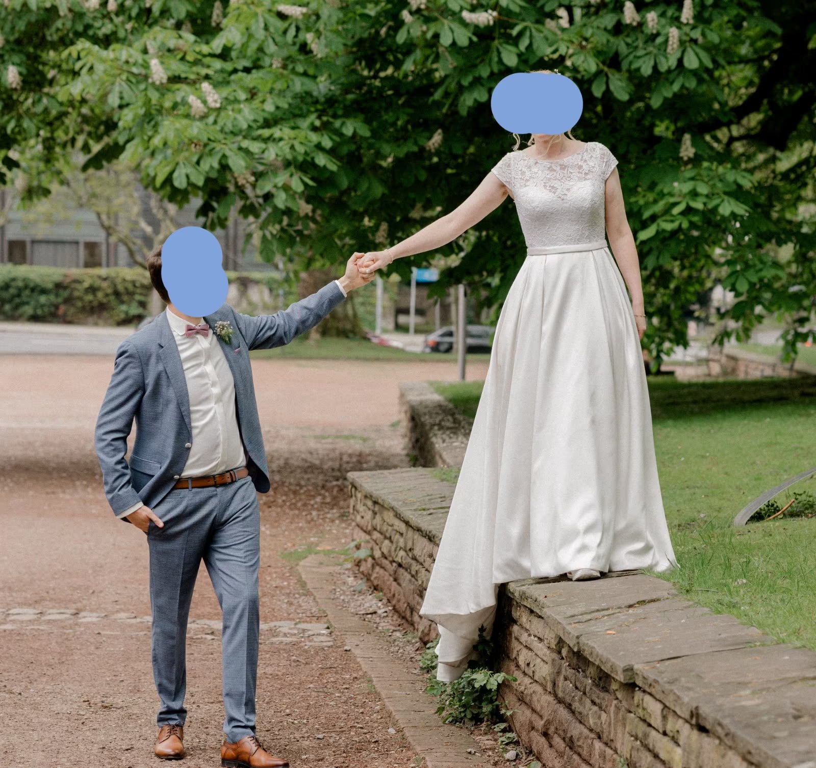 Wir haben die Eigenschaft sehr geschätzt, dass man den "Schleppteil" des Kleides zum Tanz hochbinden kann.