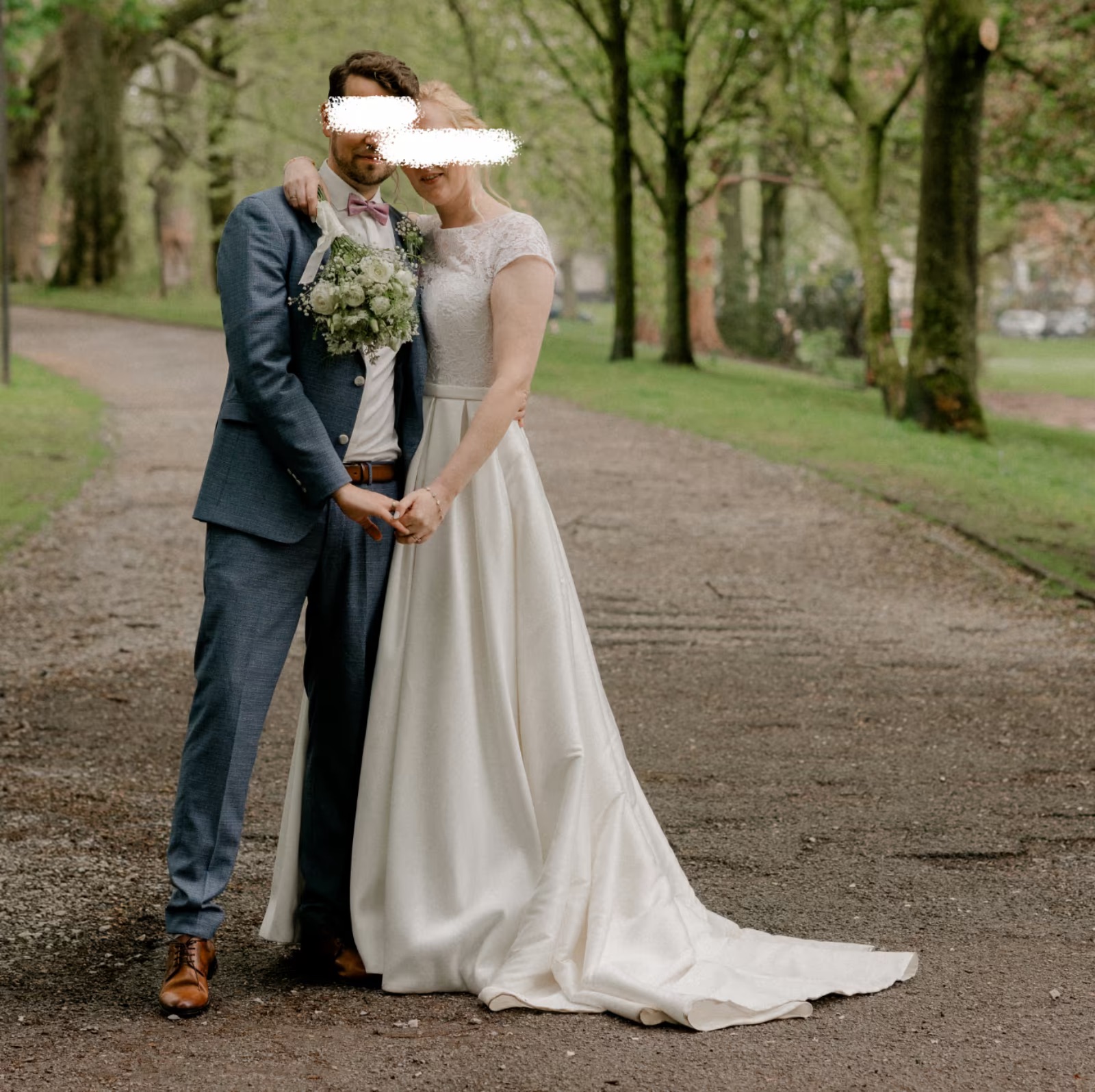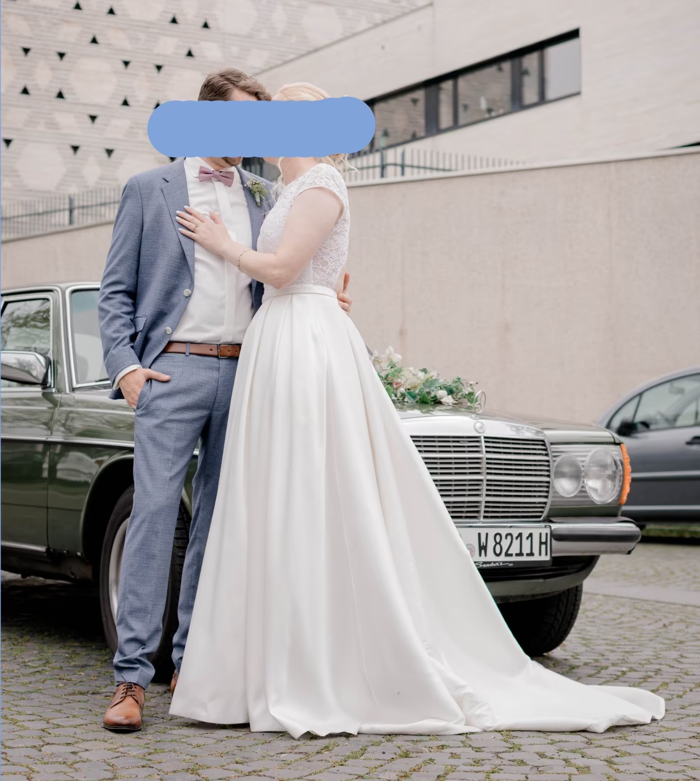 "Wir verkaufen unser Hochzeitskleid, was – wenig verwunderlich – nur einmal getragen wurde. Es wurde professionell gereinigt und hängt nun, versiegelt und verpackt bei uns, um ein weiteres Paar glücklich zu machen.