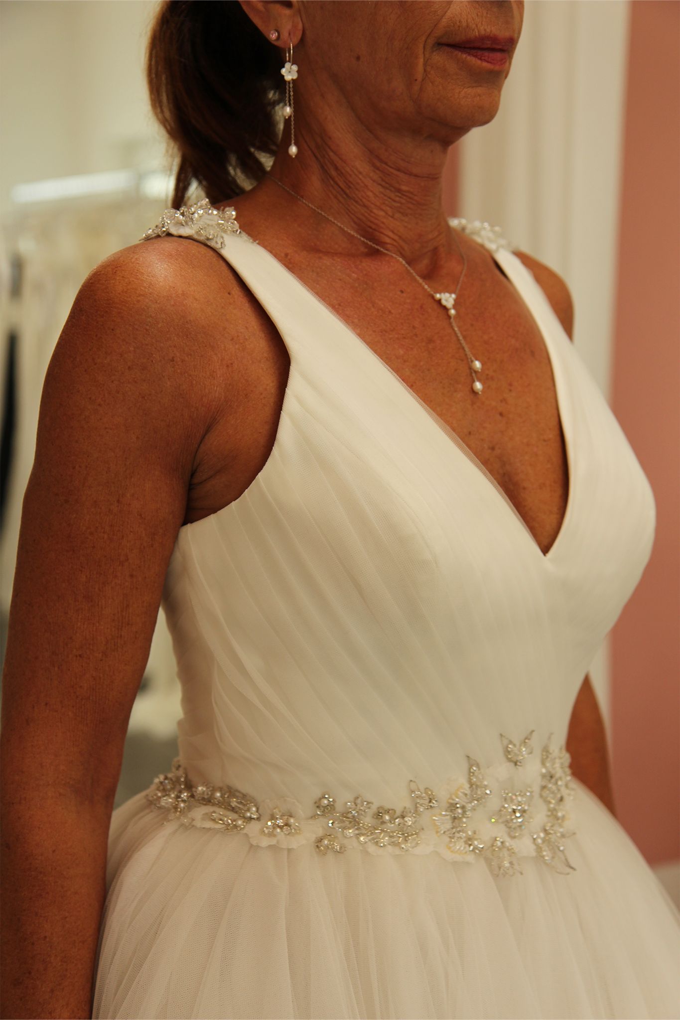 Verzierungen: Gürtel, Mehrlagiger Rock, Netzstoff / Tüll, Schmucksteine / Strass / Kristalle, Zierdetail