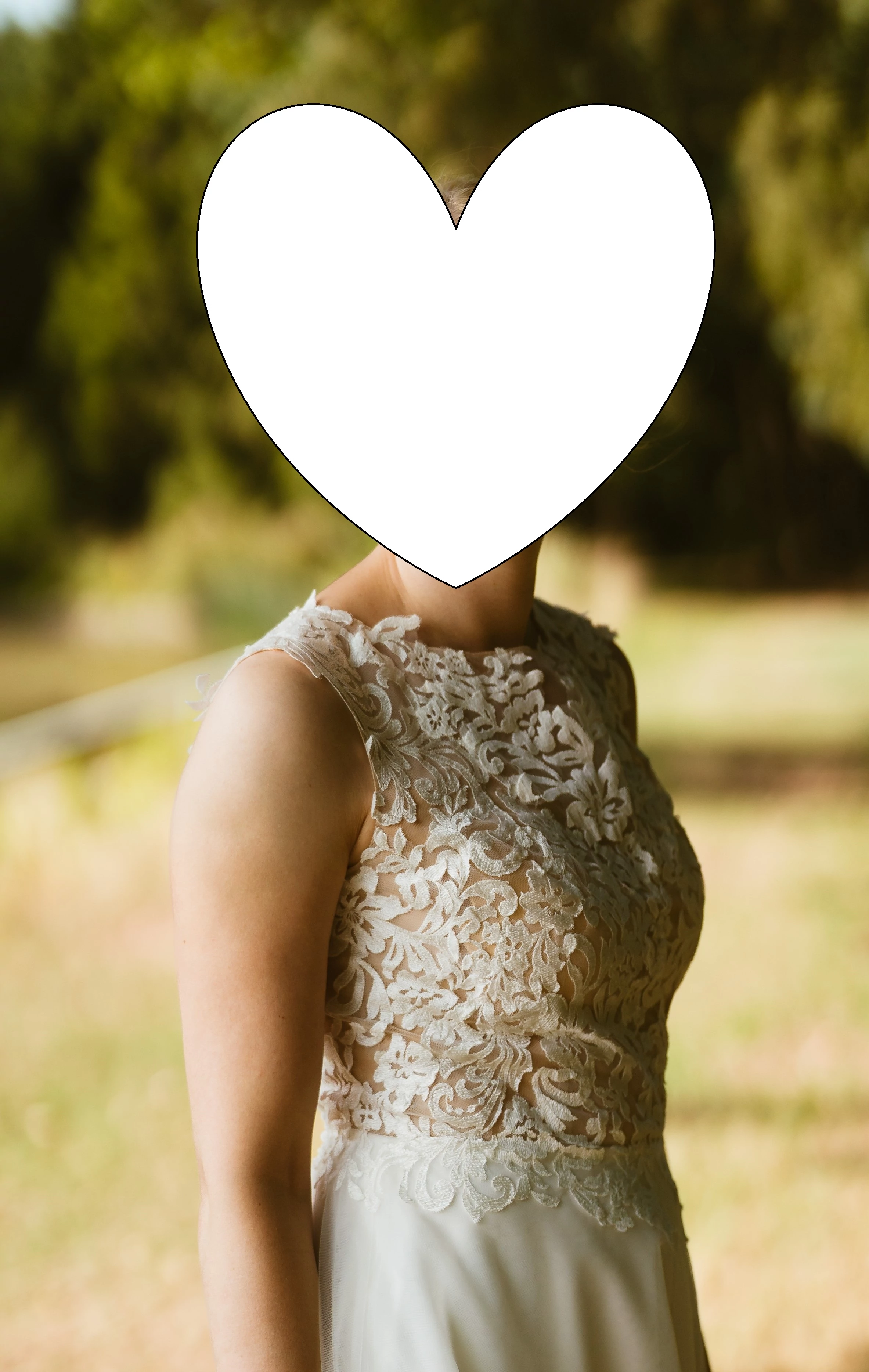 Besonderheiten: Die Cups wurden im Brautkleid-Atelier professionell herausgetrennt, können aber jederzeit wieder eingenäht werden. Sie sind ungetragen, da ich mich für einen Klebe-PushUp-BH entschieden hatte.